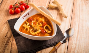 Appease appetites Mediterranean style with one, two or three pizzas accompanied by soft drinks