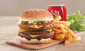 A choice of king burger, served with medium chips and a soft drink, awaits customers at this South African burger restaurant in Yas Mall