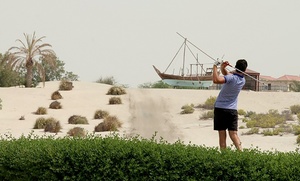 Up to four people can enjoy an 18-hole round of golf with rental buggy, golf balls and mat, breaking for a meal accompanied by a soft drink