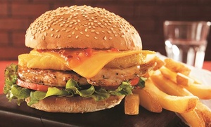 One to four diners can opt for a burger or Mexican wrap accompanied by fries and salad, plus choice of house beverage or soft drink