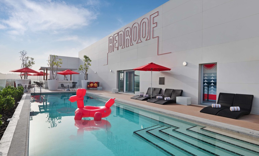 Chill by the pool, sip fresh beverages, and savor rooftop views at RED Roof. Includes F&B credit and live DJ sets across themed nights