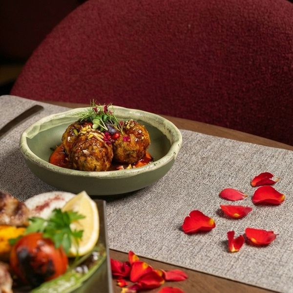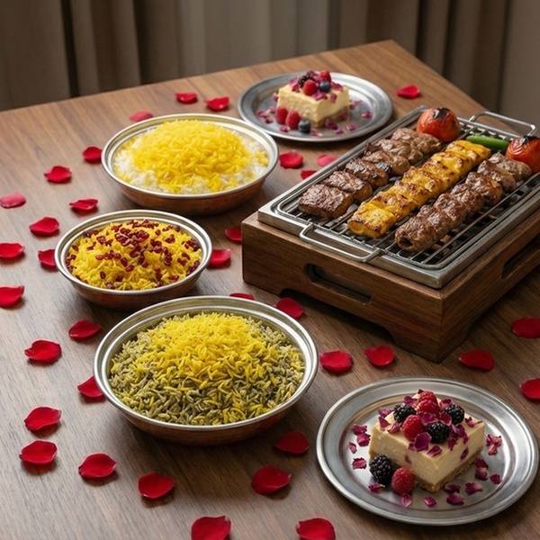 The evening begins with traditional Persian welcome elements, followed by a selection of chef-recommended starters, signature kababs prepared with saffron and aromatic spices, and perfectly paired rice accompaniments. The experience concludes with a handcrafted dessert and traditional Persian saffron tea, creating a memorable Valentine’s celebration designed for sharing.