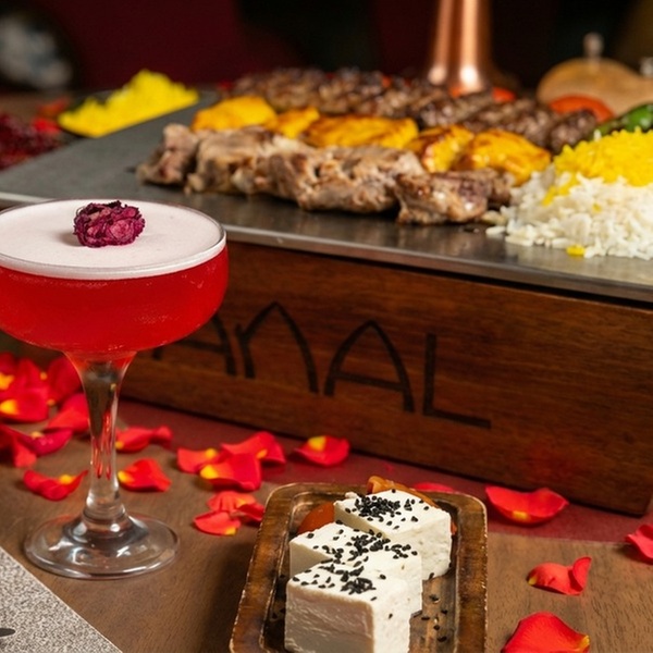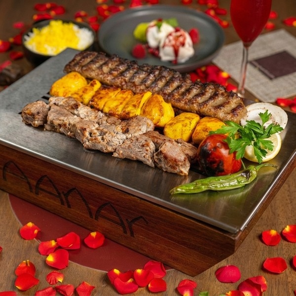 Celebrate Valentine’s Day with a premium Persian sharing experience featuring signature starters, classic kababs, aromatic rice, handcrafted dessert, and traditional saffron tea