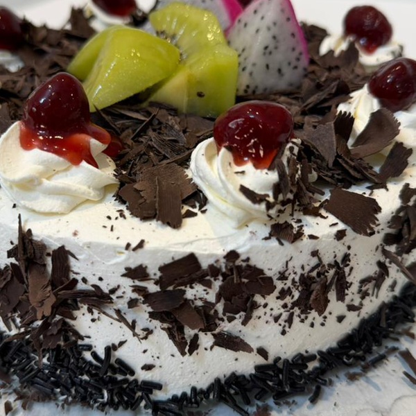 Choice of cake may include : vanilla fruit cake , white forest cake , black forest , chocolate cake , red velvet cake and mango mousse cake