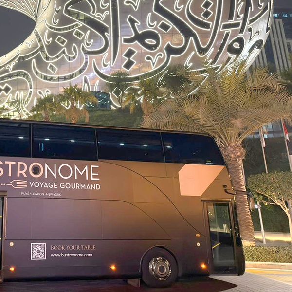 Step aboard Dubai’s first gourmet double-decker bus, an upscale mobile restaurant offering a refined dining experience paired with stunning 360° panoramic views. Guests can savor an elegant dinner while gliding past Dubai’s most iconic landmarks, including the Burj Khalifa, Museum of the Future, Dubai Frame, Royal Palace, DIFC, and Dubai World Trade Centre. Blending English flavors with a French touch, this high-end culinary journey features 4- to 6-course menus crafted from the finest seasonal produce, delivering a truly gastronomic getaway unlike anything else in the city.