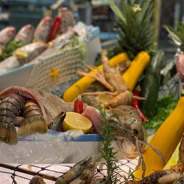 - Display of fresh fish and seafood ready to cook fresh