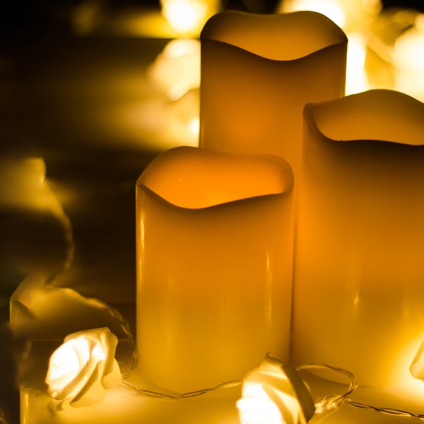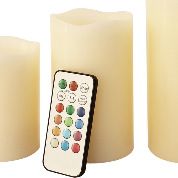 - One package includes three candles measuring 7.6cm in diameter and a remote controller with a battery (the candles run on three AAA (LR03) batteries which are not included)
