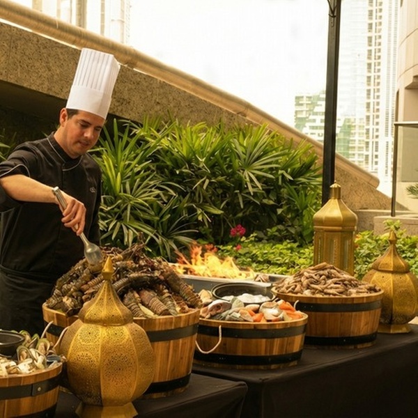 The lavish Iftar buffet showcases an abundant spread of traditional mezze and Ramadan favorites, complemented by live BBQ stations, authentic Ouzzi, rich Emirati and Moroccan specialties, and an indulgent array of handcrafted desserts. As the evening unfolds, the soulful melodies of a live oud player create a warm and captivating setting, making it the perfect destination to gather, reflect, and share meaningful moments during the Holy Month.