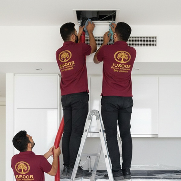 Regular AC duct cleaning by Jusoor Facility Management ensures healthier indoor air quality by removing dust, mold, and contaminants. This leads to improved system efficiency, better airflow, reduced allergies and odors, and can even help lower your energy costs.