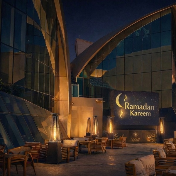 Widespread buffet of Arabic and international specialties, live mixed grill, chicken shawarma stations and signature roasted Ouzi, dessert stations, and elegant indoor or scenic terrace seating overlooking the Al Raha Creek — perfect for memorable family and group gatherings during the Holy Month