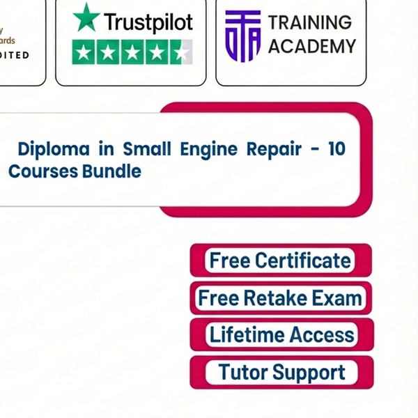Comprehensive Small Engine Repair Diploma – 10 Courses: Master the core principles of small engine diagnostics and repair, vehicle maintenance, and essential electrical and safety systems. This bundle includes specialized training in: Handyperson, Motorbike Mechanic, Energy Management, Car Mechanic Training, Energy Consultant Diploma, Car Restoration, Large Goods Vehicle (LGV), PUWER, Basic Electricity, and Electrical Safety & Risk Assessment.