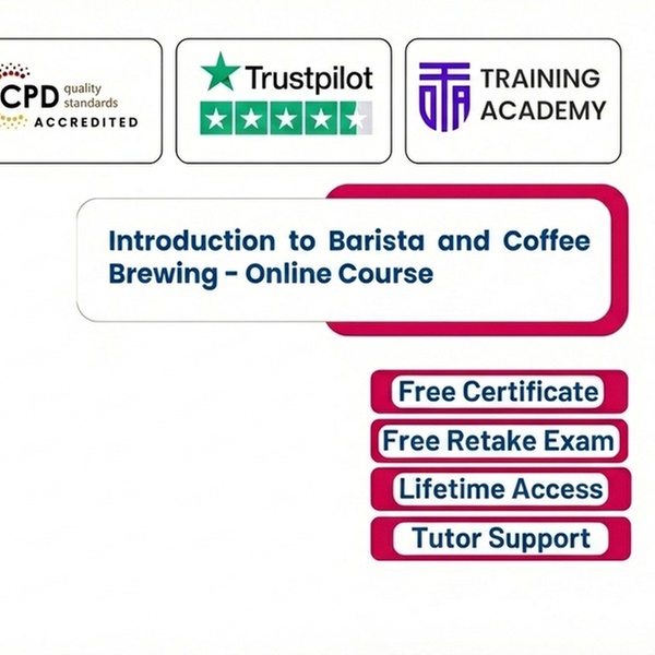 Embark on a comprehensive journey into the world of professional coffee preparation, designed for beginners and aspiring baristas. You'll confidently explore coffee origins, understand diverse bean varieties, master essential espresso equipment and barista tools, and build a strong foundation in crucial techniques like grinding, dosing, tamping, and extraction used in cafés worldwide. Develop hands-on skills in milk frothing, prepare classic coffee recipes, and learn the creative artistry of latte art, all while gaining professional awareness of efficient barista workflows, hygiene, and excellent customer service. This fully online, interactive course offers lifetime access for continuous learning and includes a complimentary PDF certificate upon completion, backed by CPD Certification and 24/7 online support with no hidden fees.