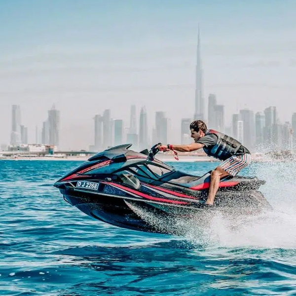 Ride high powered jet skis along the Dubai coastline with scenic views of Burj Al Arab professional guides and flexible ride times