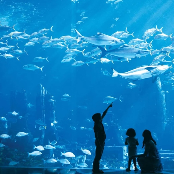 • Encounter exotic marine species, coral gardens, and themed tunnels.