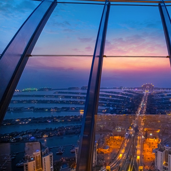 Discover Dubai from a new perspective at The View at The Palm, located on Level 52 of The Palm Tower. Enjoy spectacular 360° views of Palm Jumeirah, Atlantis, the Arabian Gulf, and the Dubai skyline.