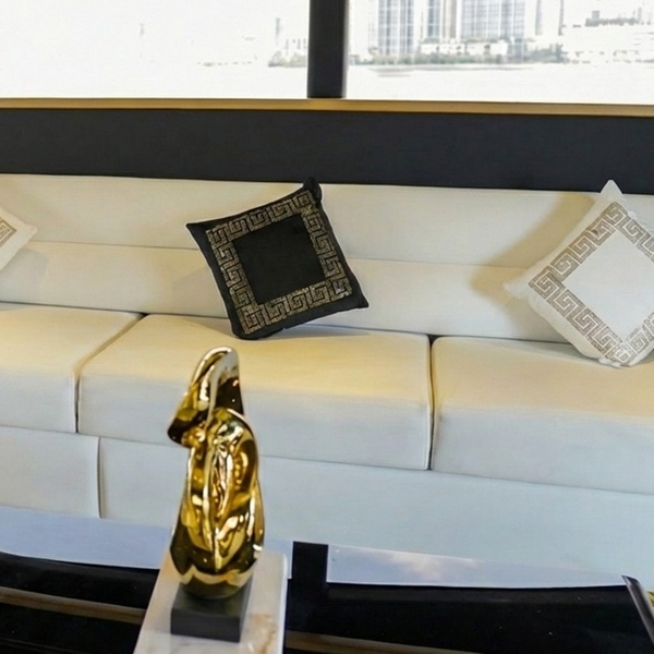 Exquisite Yacht Design: Admire the striking high-gloss black exterior with refined gold accents and step into elegant interiors featuring ambient LED lighting and premium finishes, creating a sophisticated atmosphere.