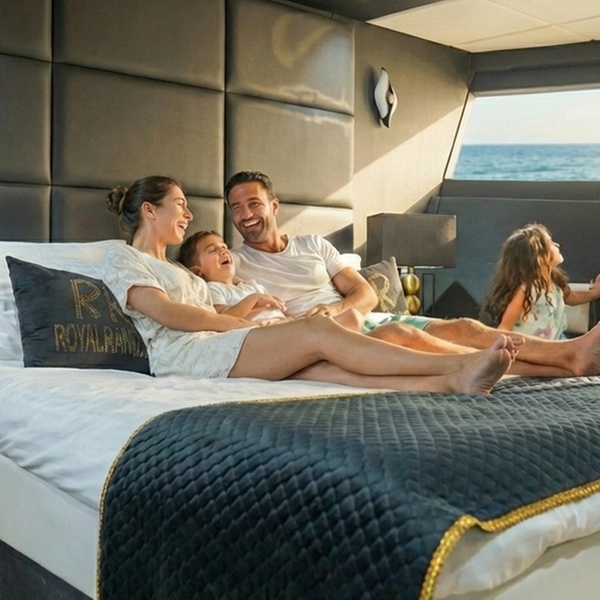You'll be cruising aboard a 2025 fully rebuilt luxury yacht by Ramzin Elysee, presented in pristine, like-new condition. It's designed for elegance and comfort with refined interiors and premium amenities.