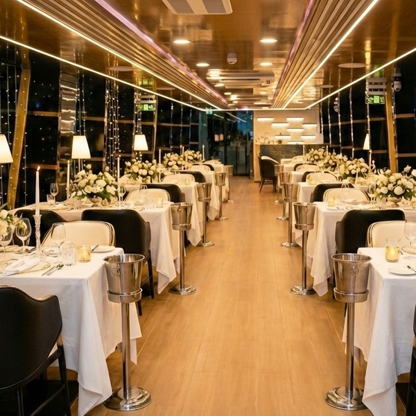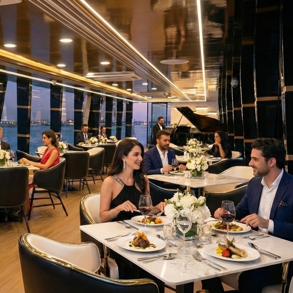 Set sail with Ramzin Elysee for an ultra-luxury floating fine-dining experience in Dubai Marina, featuring gourmet cuisine, premium service, and iconic skyline views!