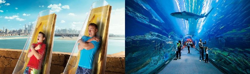 Customers enjoy a thrilling day at the Aquaventure Waterpark and explore the fascinating Lost Chambers Aquarium, with exciting water slides and rides exploring underwater world