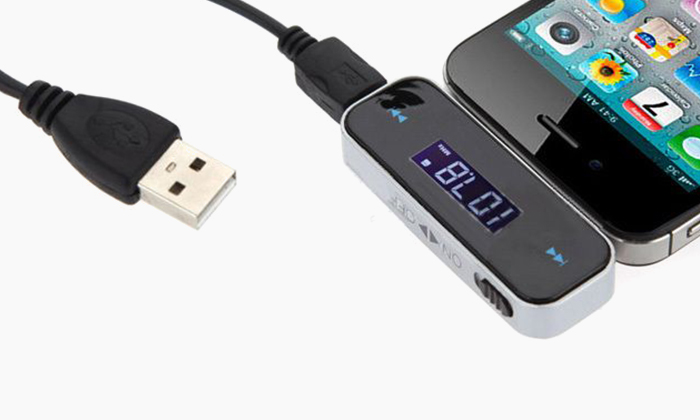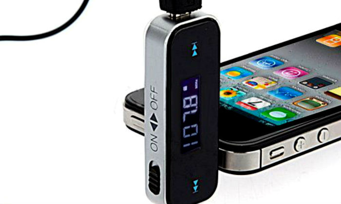 FM Transmitter for iPod, iPad, iPhone, MP3/MP4 players and other mobile phones come with a 3.5mm audio jack