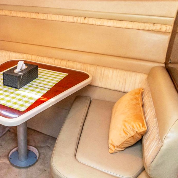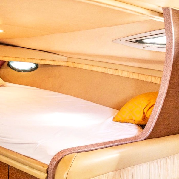 Enjoy a refreshing shower, comfortable air conditioning, soft beverages, a cooler box, well-maintained toilets, high-quality speakers for entertainment, a fully stocked bar, relaxing sunbeds, ice, and all necessary cutlery, plates, cups, a fridge, and private bedrooms for ultimate comfort and convenience.