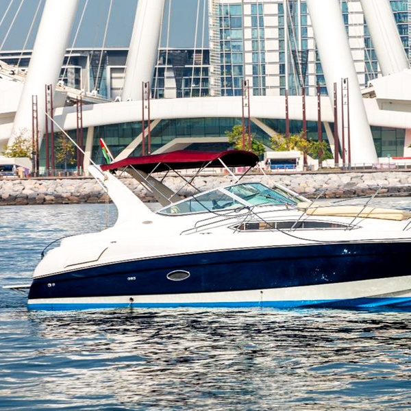 A luxury private yacht experience on a 33ft Regal model, including fuel, an experienced captain, and a professional crew, ensuring a seamless and opulent journey across the Dubai waters.