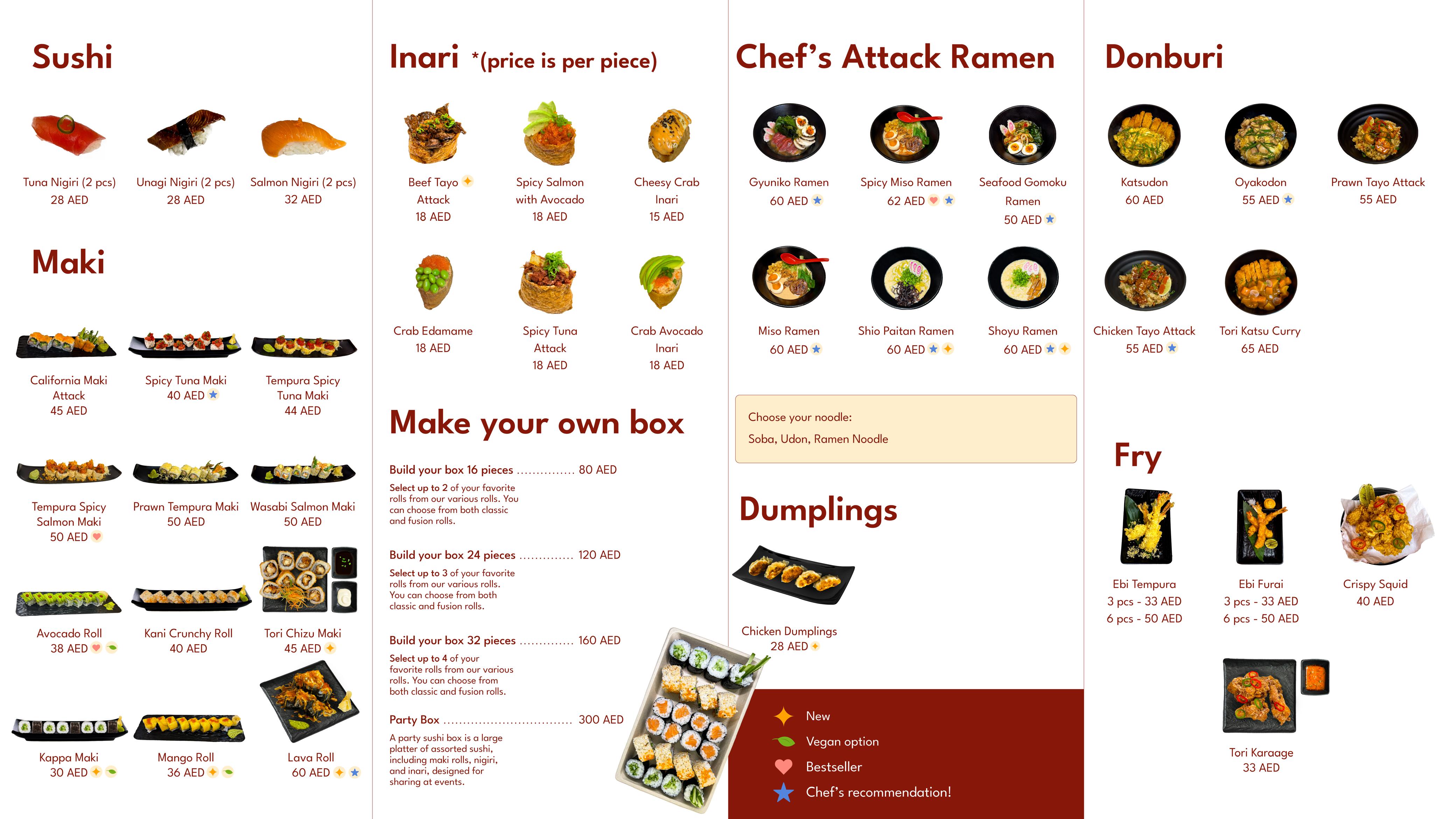 Experience chef-crafted signature sushi creations with options like ramen or take-out, perfect for any craving