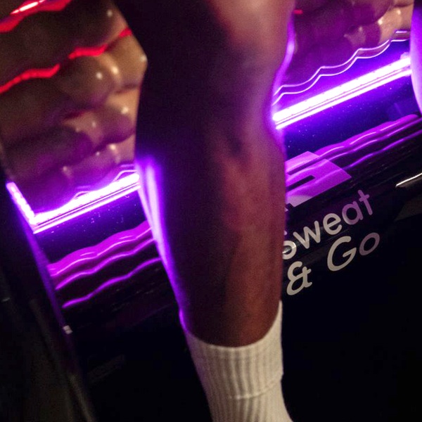 - Sessions occur in a cycling pod and a self-guided massage roller