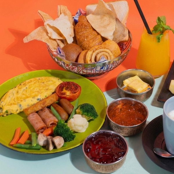 Guests can enjoy a wide spread of international dishes from a diverse breakfast buffet, featuring a live cooking station and a live egg station for freshly prepared items. The selection includes cereals, various bakery items, a refreshing cold buffet, and an array of international main courses, alongside tea, coffee, and fresh juice selections. Complimentary access to the infinity pool is also included.