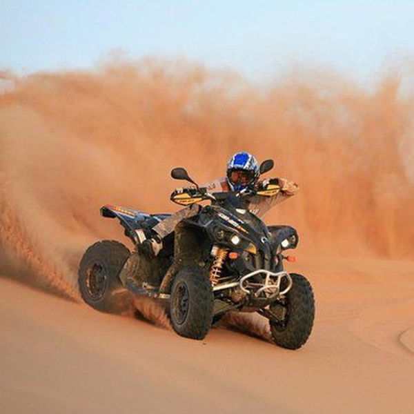 Experience thrilling ATV rides in the Lehab Desert with options for different session lengths. Enjoy secure guidance and stunning views