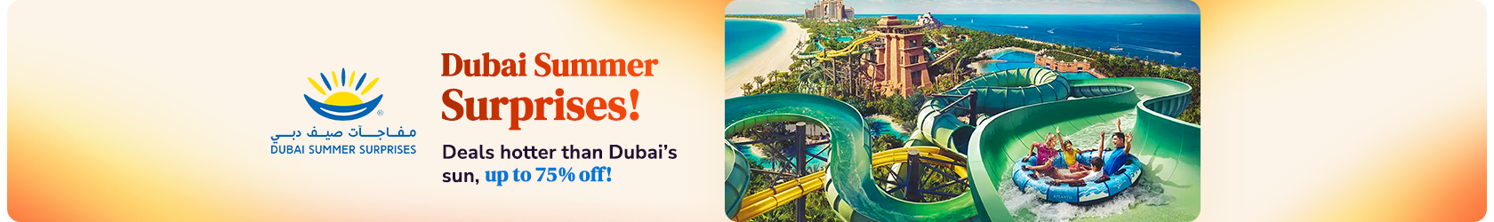 Dubai Summer Surprises 2025 brings you unbeatable offers to enjoy the city in style while staying cool. From rejuvenating health and wellness packages to mouth-watering food and drink deals, our summer sale has something for everyone. Whether you're planning a luxury staycation, pampering yourself with top beauty brands, or exploring family-friendly indoor fun, DSS has you covered.